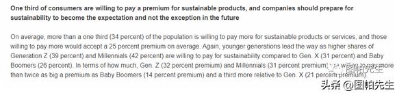 如今,環(huán)保已不再是那種空洞的口號(hào)了,而是實(shí)實(shí)在在的購買力,全球大概有三分之一的消費(fèi)者是愿意為可持續(xù)產(chǎn)品支付更高價(jià)格的比例,在青年群體當(dāng)中,這樣的比例是更高的,他們樂意支持直至高達(dá)20%上的溢價(jià)。